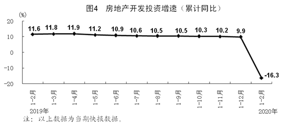 1-2月份,全國(guó)固定資產(chǎn)投資(不含農(nóng)戶)33323億元,同比下降24.5%。分領(lǐng)域看,基礎(chǔ)設(shè)施投資同比下降30.3%,制造業(yè)投資下降31.5%,房地產(chǎn)開發(fā)投資下降16.3%。全國(guó)商品房銷售面積8475萬平方米,下降39.9%;商品房銷售額8203億元,下降35.9%。分產(chǎn)業(yè)看,第一產(chǎn)業(yè)投資下降25.6%,第二產(chǎn)業(yè)投資下降28.2%,第三產(chǎn)業(yè)投資下降23.0%。民間投資18938億元,下降26.4%。高技術(shù)產(chǎn)業(yè)投資下降17.9%,降幅低于全部投資6.6個(gè)百分點(diǎn),其中高技術(shù)制造業(yè)和高技術(shù)服務(wù)業(yè)投資分別下降16.5%和20.8%。檢驗(yàn)檢測(cè)服務(wù)和專業(yè)技術(shù)服務(wù)投資分別增長(zhǎng)26.1%和4.3%。社會(huì)領(lǐng)域投資下降20.0%,其中衛(wèi)生領(lǐng)域投資下降11.2%,降幅低于全部投資13.3個(gè)百分點(diǎn)。