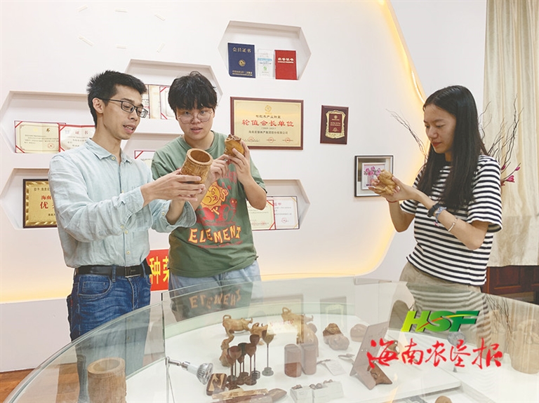 消費(fèi)者正在選購海墾寶橡林產(chǎn)集團(tuán)出產(chǎn)的木制工藝品。袁宇君 攝