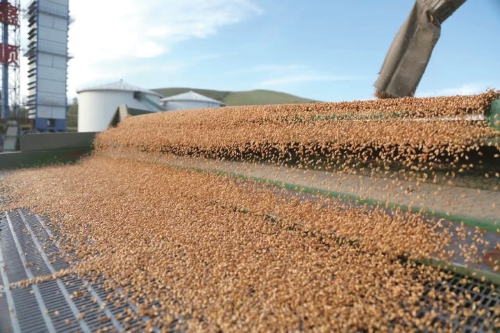 免渡河農(nóng)牧場(chǎng)收獲的小麥正在進(jìn)行篩選,等待烘干后入倉(cāng)?!⊥踯帯z