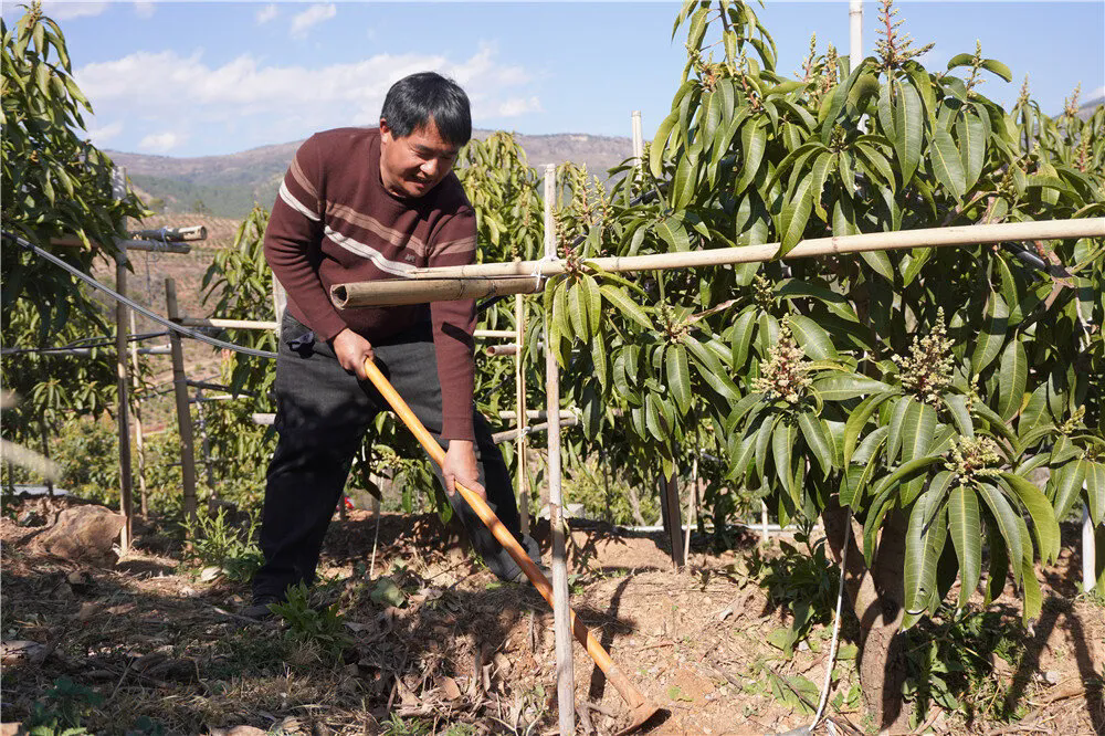 這種與時(shí)間賽跑的智慧,在高海拔山區(qū)體現(xiàn)得更為突出。中心鎮(zhèn)田坪村村民鐘騰平去年12月才賣完最后一批晚熟芒果,“我們這兒海拔比壩區(qū)高不少,晝夜溫差大,果子能再晚熟1個(gè)多月,正好打個(gè)時(shí)間差。”麻利搭建芒果支撐架的他,已然投入新一輪管護(hù),2025年,他家200畝芒果總產(chǎn)量超15萬公斤,收入超110萬元,而晚熟品種正是收益的主力軍。
