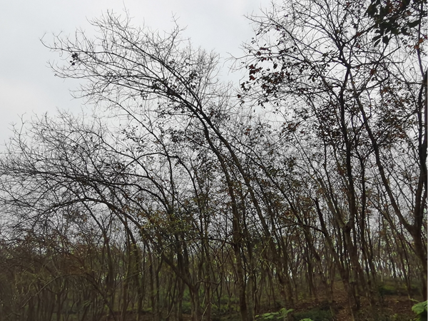 據(jù)片區(qū)各監(jiān)測站、點(diǎn)2月9日的監(jiān)測數(shù)據(jù)顯示:河口植膠區(qū)大部分割膠林段橡膠樹落葉達(dá)80%左右,少部分老膠林、新開割林段落葉在60%~70%,橡膠樹未見萌動;金平、綠春植膠區(qū)整體落葉進(jìn)程較早,落葉整齊,抽葉較早,大部分植株已進(jìn)入萌動階段,其中陽坡少部分植株已開始抽芽。