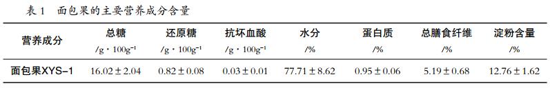 2.1 面包果果肉主要營(yíng)養(yǎng)成分含量